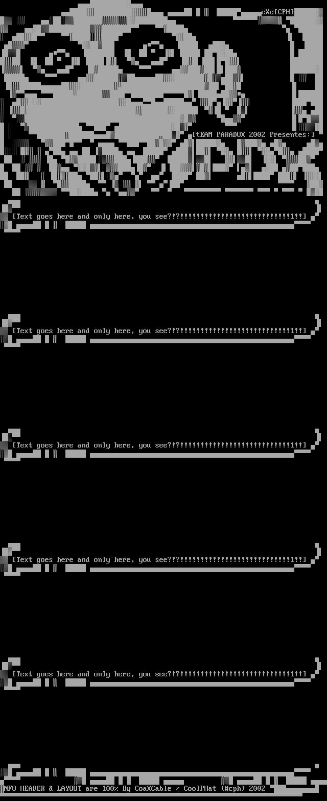 CXC!LOA.NFO | 2002-08-04 20:11 | 2.7K | |